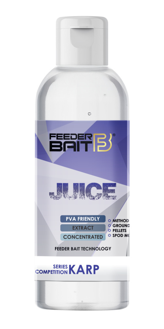 Juice Feeder Bait to niezwykle gęste zalewy służące do podniesienia walorów smakowych i zapachowych stosowanych zanęt, mixów, pelletów, ziaren. Najlepsze efekty ich zastosowania możemy zauważyć podczas nęcenia w okresie letnim oraz na łowiskach o znacznym zamuleniu i gęstej roślinności przydennej czyli zawsze wtedy kiedy musimy przebić się z aromatem przez specyficzny zapach panujący w wodzie. Juice Feeder Bait występują w sześciu smakach i w większości przypadków są to aromaty łączone tak aby osiągnąć efekt podwójnego wabienia.