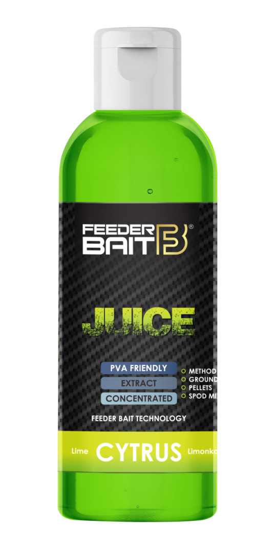 Juice Feeder Bait to niezwykle gęste zalewy służące do podniesienia walorów smakowych i zapachowych stosowanych zanęt, mixów, pelletów, ziaren. Najlepsze efekty ich zastosowania możemy zauważyć podczas nęcenia w okresie letnim oraz na łowiskach o znacznym zamuleniu i gęstej roślinności przydennej czyli zawsze wtedy kiedy musimy przebić się z aromatem przez specyficzny zapach panujący w wodzie.